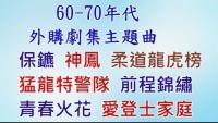 60-70年代外購劇集主題曲: 保鑣 (徐小鳳), 神鳳 (森森 斑斑), 柔道龍虎榜 (徐小鳳), 猛龍特警隊 (石修), 前程錦繡 (羅文), 青春火花, 愛登士家庭